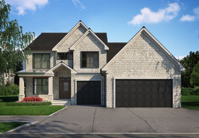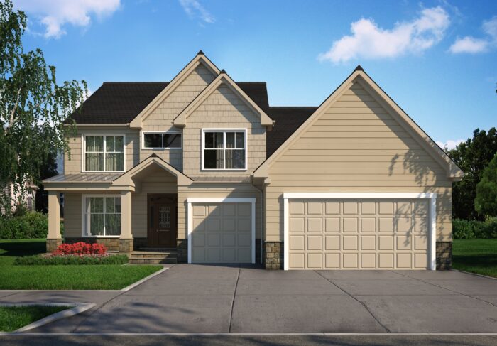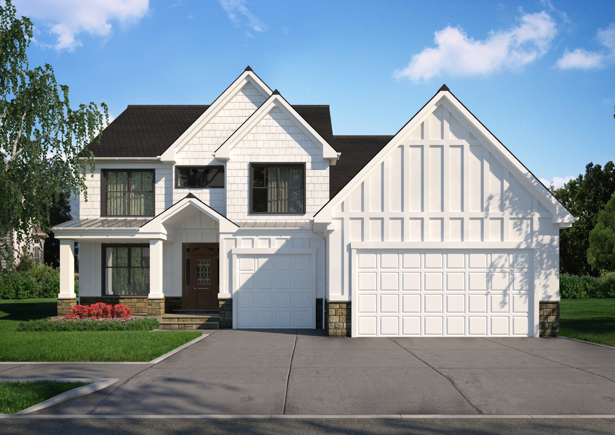 Exterior images of suburban family house with different facade materials